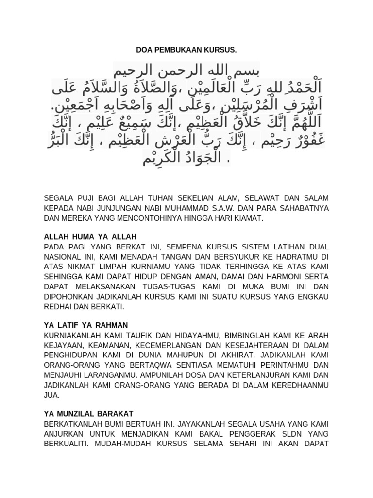 Dalam artikel ini ada 5 doa mohon keselamatan dunia dan akhirat yang bisa kamu terapkan dalam kehidupan sehari-hari. ةنسح íرخلا فو ةنسح اي -لدا ف انتآ انبر يص لا كيلاو انب -ا كيلاو انكوت كيلع انبر. Sebagai contohnya bacaan doa bersempena dengan Majlis Penutup Bengkel Seminar Kursus di sekolah.