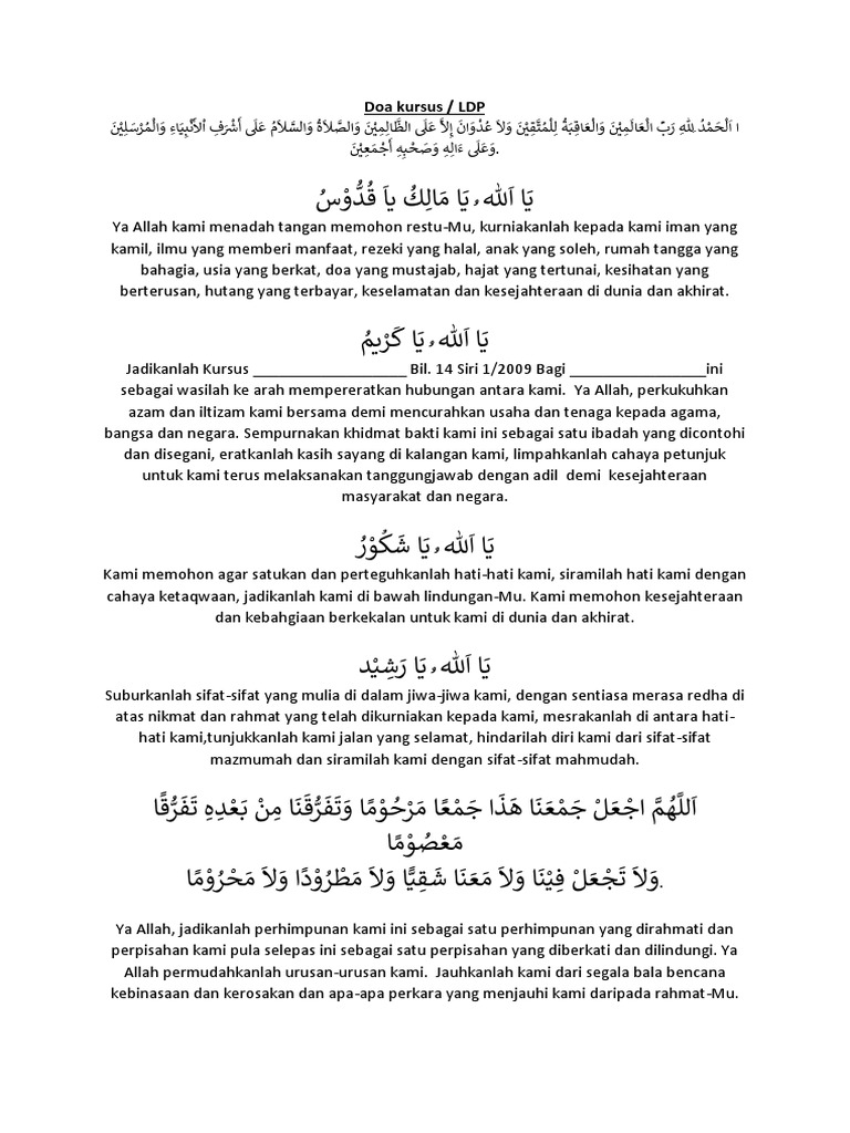 Tulisan ini adalah oleh-oleh dari pengajian yang saya ikuti semalam. JABATAN PERTANIAN Aras 7-17 Wisma Tani No. Isi kandungan doa juga boleh diterjemah dalam Bahasa Inggeris Arab dan bahasa-bahasa lain sesuai dengan hadirin dan majlis tersebut.
